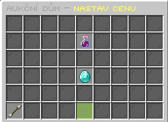 Klikněte na nastavení ceny (zobrazeno jako diamant) a v chatu napište částku, za kolik chcete item prodat