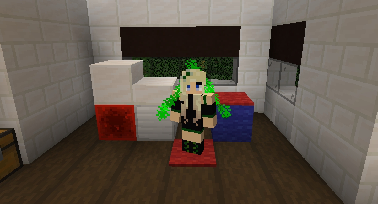 (spodní blok │ horní blok) • iron block │ quartz slab • blue wool │ red carpet • redstone block │ quartz bloc