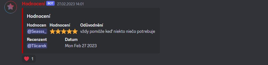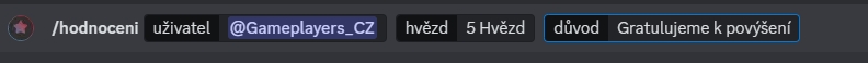 Napište /hodnocení a klikněte na nabídku s "uživatel" apod.