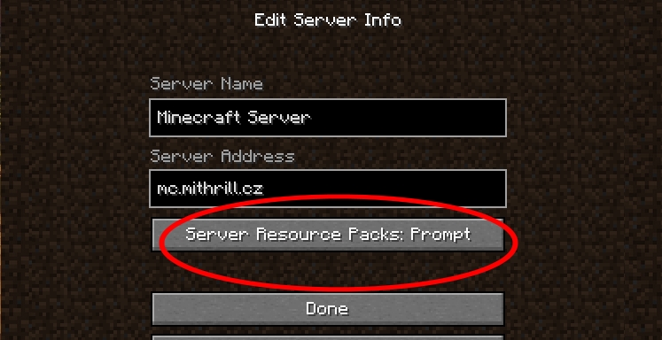 Vyberte v edit server info "SERVER RESOURCE PACK : PROMTP nebo ENABLE"