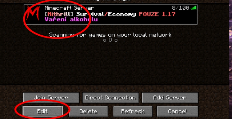 Myší klikněte jednou na název serveru, aby byl vybrán a dole vyberte "EDIT"